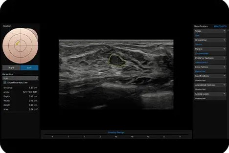 Fonctions de diagnostic enrichies avec exactitude et précision: Le système V7 est doté de fonctions avancées qui permettent d’établir des diagnostics précis et d’augmenter le rendement. La variété des fonctions et l’interface conviviale du V7 contribuent à améliorer considérablement l’expérience quotidienne des professionnels de la santé en matière d’examen échographique.